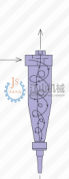 流入り口から流れ込む液體はターボ狀を下げながら、遠(yuǎn)心力で異物を分離する。高く分けられた異物は錐體の內(nèi)壁に沿って下がって、液體とともに下から口から排出する。また、異物を分離した液體は、下部の噴霧部位に上昇ターボを形成し、吐息を吐く。