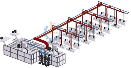 ●鏈接各種機器的冷卻液槽和集中過濾槽能夠自由配置 ●多臺加工機器がコンパクトに配置されている ●穴が不要で、工場の施工費用を下げることができる
